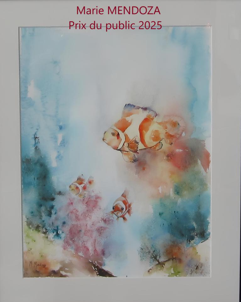 Mme Marie MENDOZA pour l'oeuvre sous-verre "Poissons - 1"